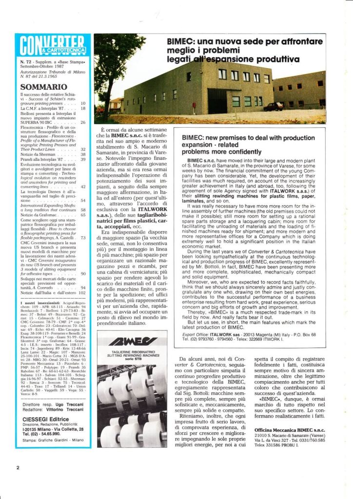 Bimec moved to new premises in San Macario di Samarate.