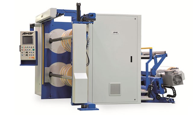 The machine rewinds finished rolls up to 600 mm of diameter at a max speed of 800 m/min
